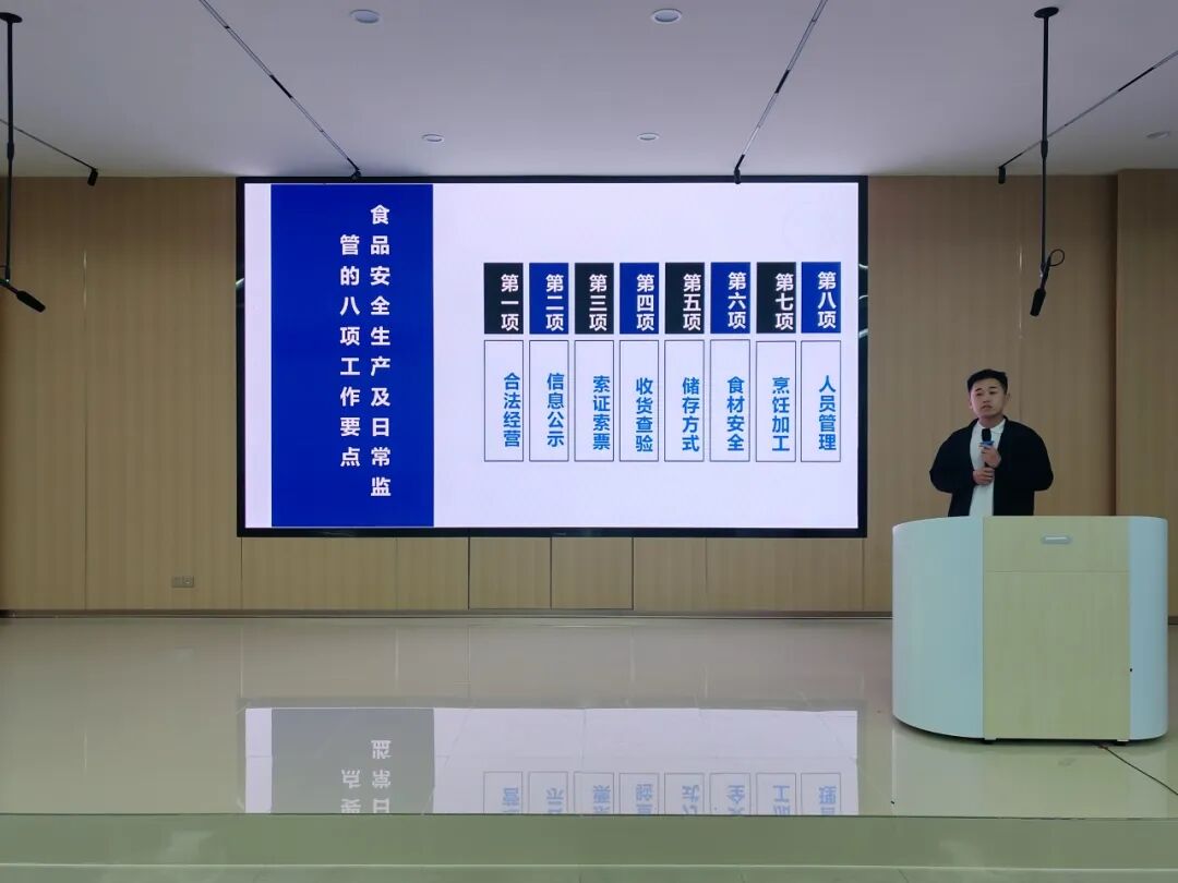 物業(yè)公司華貿(mào)項目部副主管何國健開展了消防、水電燃氣安全知識培訓,重點強調(diào)提高安全意識,規(guī)范操作流程,加強隱患排查,落實供餐保障工作。物業(yè)公司南洋項目部副經(jīng)理王雅娟對2024年度校園食堂及商鋪安全生產(chǎn)經(jīng)營工作進行了全面回顧與總結(jié),重點強調(diào)三方面:一是嚴守安全底線,壓實主體責任;二是狠抓規(guī)范建設(shè),夯實管理根基;三是強化服務(wù)意識,踐行雙重使命。物業(yè)公司廣科松山湖項目部副經(jīng)理丁斐重點強調(diào)校園電動車管理條例及外來車輛進出管理規(guī)定,并組織學習《廣東科技學院校內(nèi)外賣送餐管理辦法》。物業(yè)公司廣科南城項目部經(jīng)理周述鵬對參會人員組織學習《廣東科技學院校內(nèi)外賣送餐管理辦法》,重點強調(diào)了校園垃圾分類處理以及控煙管理規(guī)定。物業(yè)公司食品安全管理中心主任助理張鴻維重點從滅火器使用、火災案例、煙氣的危害、用電注意事項、疏散逃生方式等方面進行消防安全知識培訓。